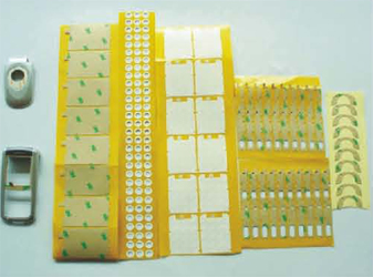 依客户图纸,提供各种进口双面胶带(3MNITTO,SONY,TESA,TERAOKA)的模切加工,具有耐高温、耐溶剂、抗老化、粘性好等特性、性能稳定可靠,广泛应用于电子工业中绝缘材料的背胶贴合,同时也提供微贴,自粘的保护膜模切加工。